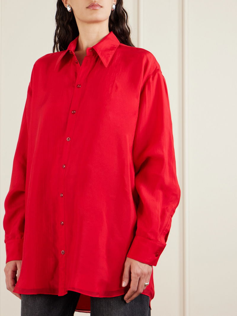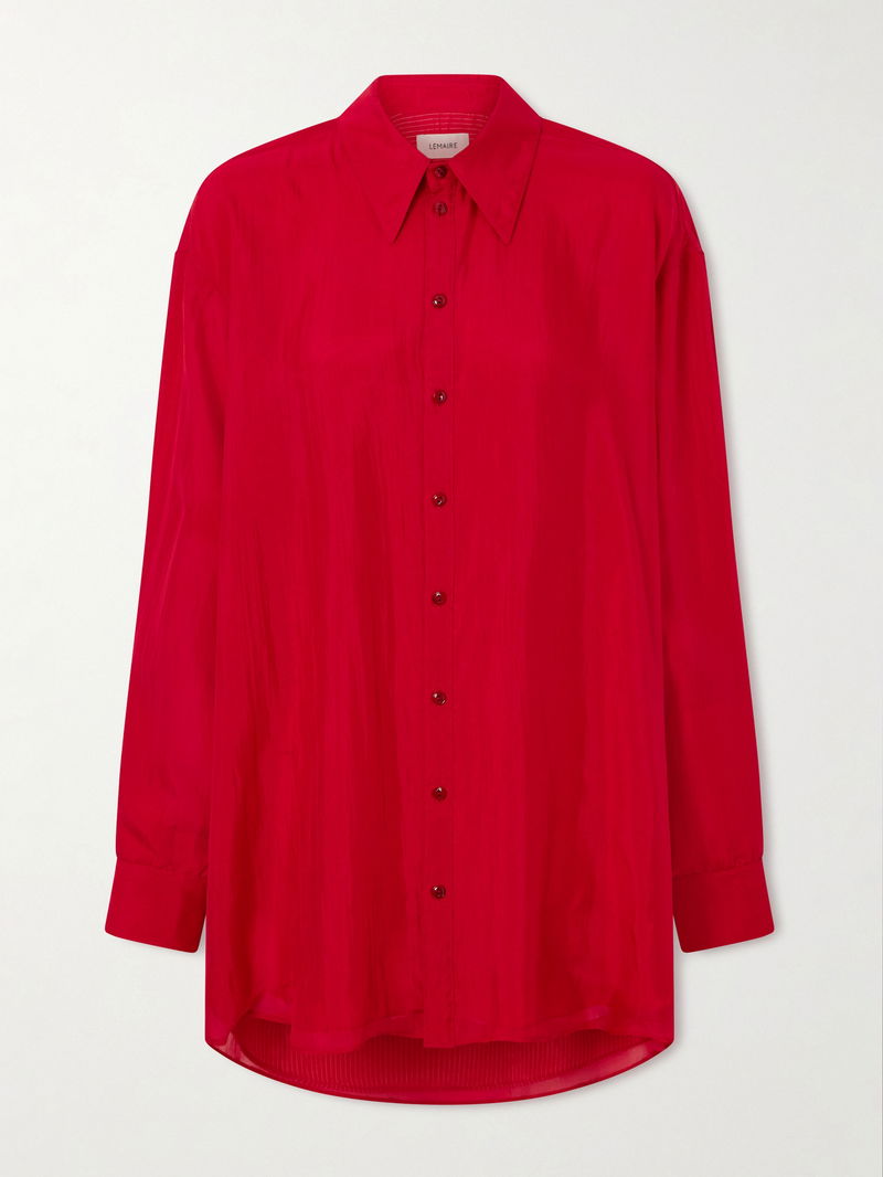 Lemaire's shirt is made from organic silk-satin in a striking 'Scarlett' shade. Designed to drape loosely over your frame, it has a neat, pointed collar and dropped shoulder seams.