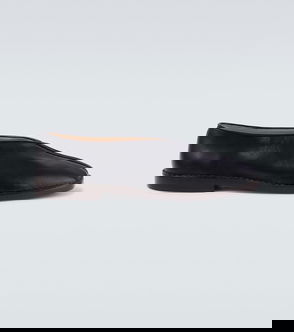 Suede slip-on loafers. Grained leather trim throughout. · Topstitching at welt· Crepe rubber midsole · Treaded rubber outsole.