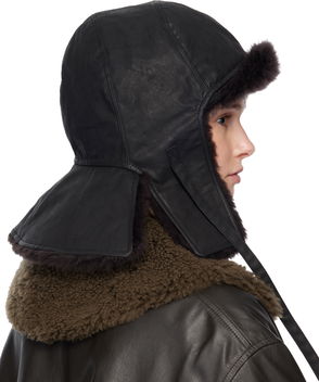 Rib knit acrylic- and alpaca-blend hood in black.