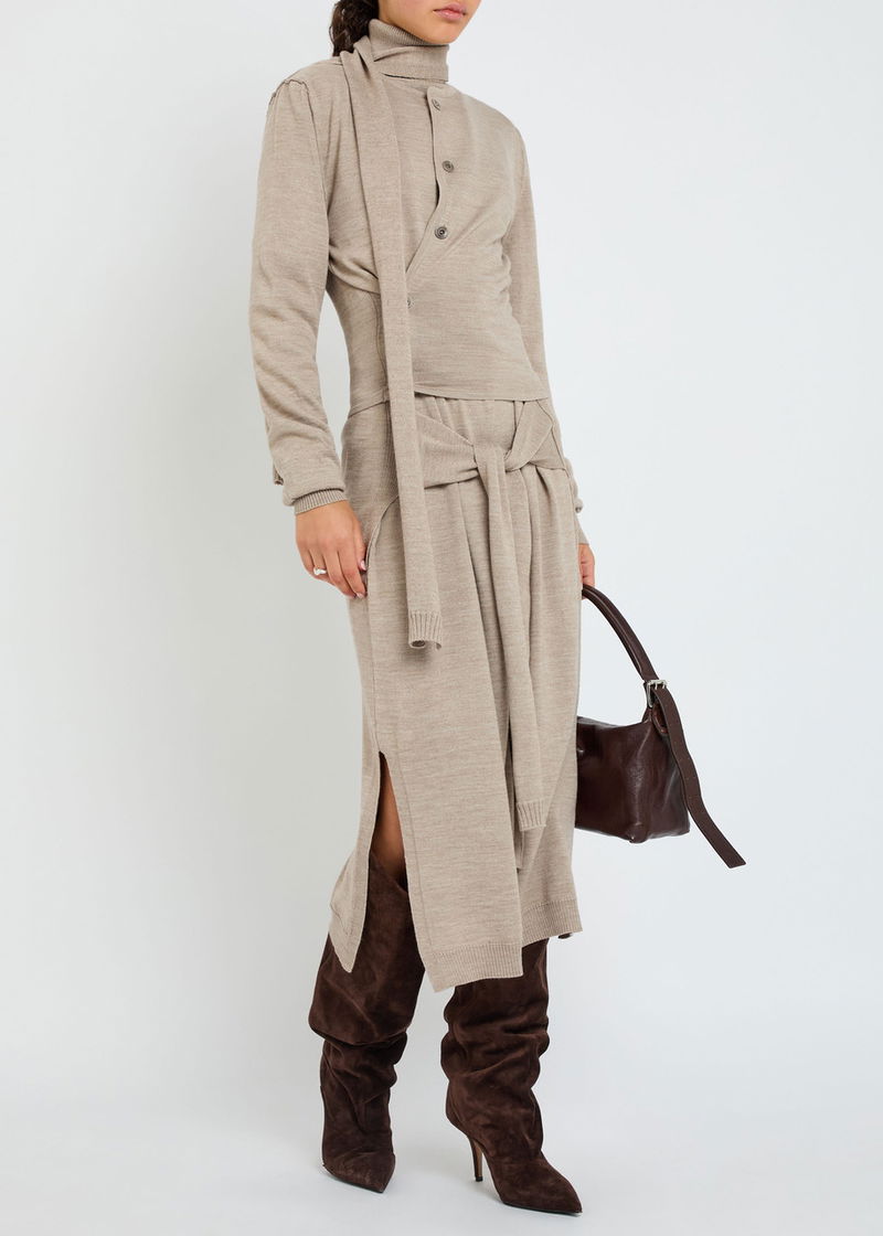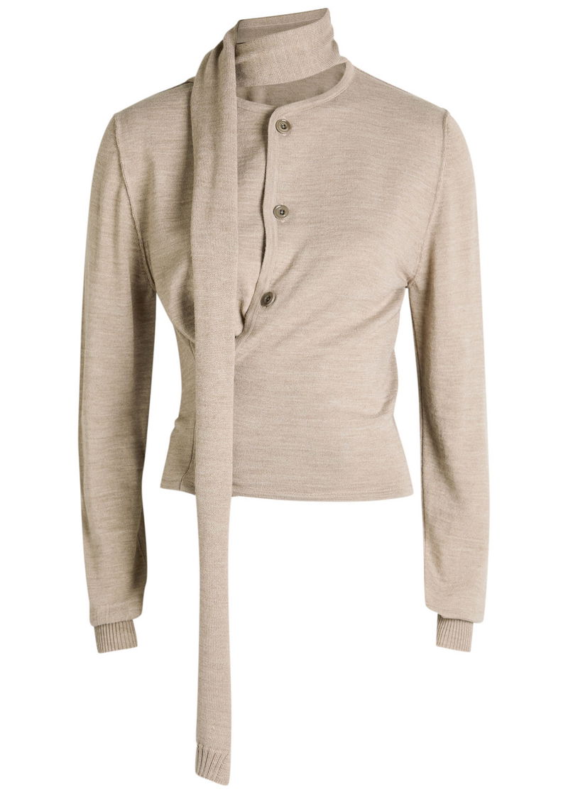 Twisted Scarf-effect Knit Cardigan