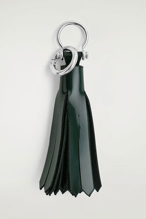 Padded grained leather keychain in khaki.· Logo-engraved silver-tone keyring·
