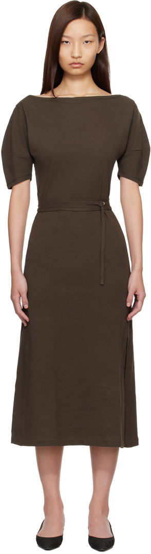 Garment-pleated silk- and viscose-blend poplin dress. Graphic pattern printed throughout.· Spread collar · Button closure · Detachable self-tie belt at waist· Detachable pouch at belt · Vented side seams. Part of the Lemaire x Atelier la Folie collaboration.