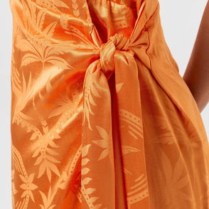 The Cleo dress is engineered into a simplistic shape. Note its round neckline and sleeveless profile. From the neck to the midi-length finish, an ombre gradient is featured, ideal for styling both with bright colours and neutrals.