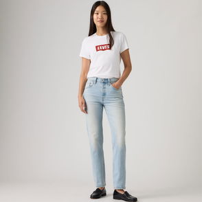 These Levi's 501 jeans are an iconic style to build your looks. Made without stretch for a more authentic fit and feel, they're fitted through the hip and thigh with a flattering straight leg and high rise waist. A forever favourite in a light-mid wash, they're finished with the brand's signature leather patch on the back waist. Great with anything from slogan tees, to crisp shirts and pretty blouses.