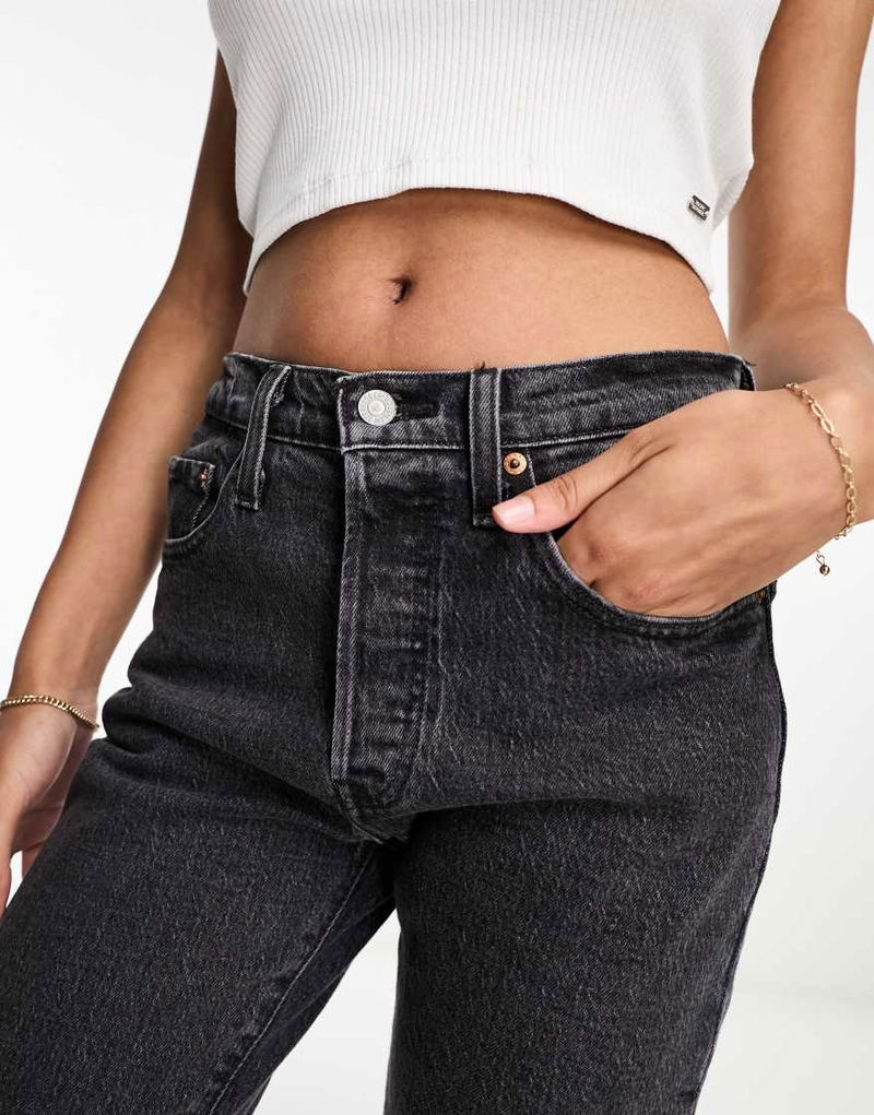 501 Straight Fit Crop Jeans In Washed Black