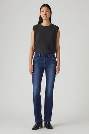 Shaped to a figure-hugging silhouette that fall into bootcut legs, these high-waisted jeans by Levi's reinvent the classics with their denim composition and fall to a regular length. Plain for ultimate versatility, slip on with whatever takes your fancy.