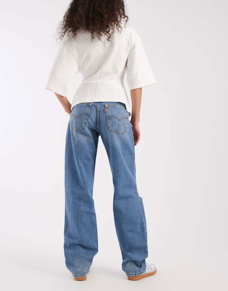 '94 Baggy Ripped Knee Jeans In Mid Blue