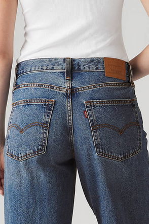 Wear, wash, repeat. Baggy fit Mid rise Belt loops Five pockets Mid-blue wash jeans Designed to be cropped Please buy 2 inches shorter than your usual size.