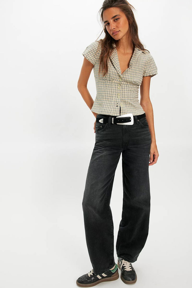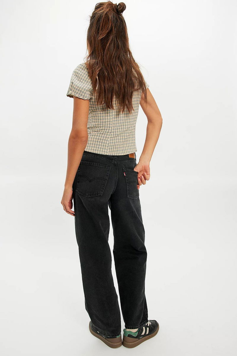 The perfect retro-inspired jeans from Levi's. Fit: Mid-rise, straight-leg silhouette with slouchy fit. Feel: rigid denim fabrication. Features: Zip fly and button closure, five-pocket design.