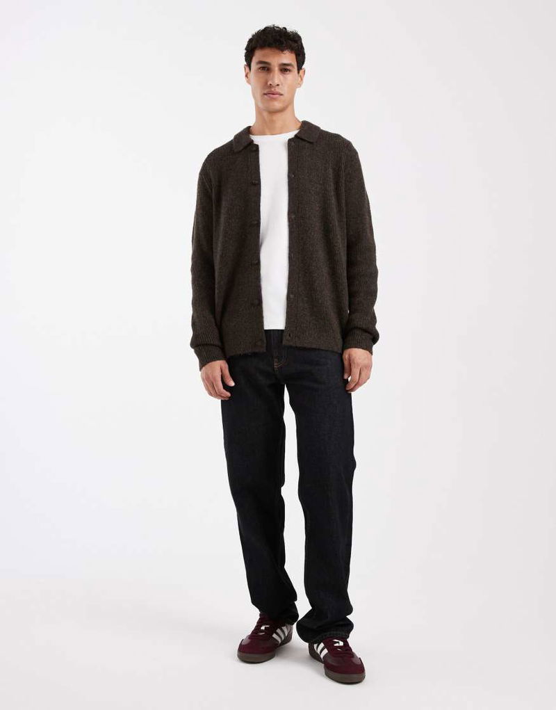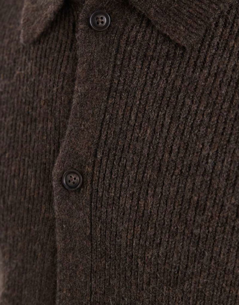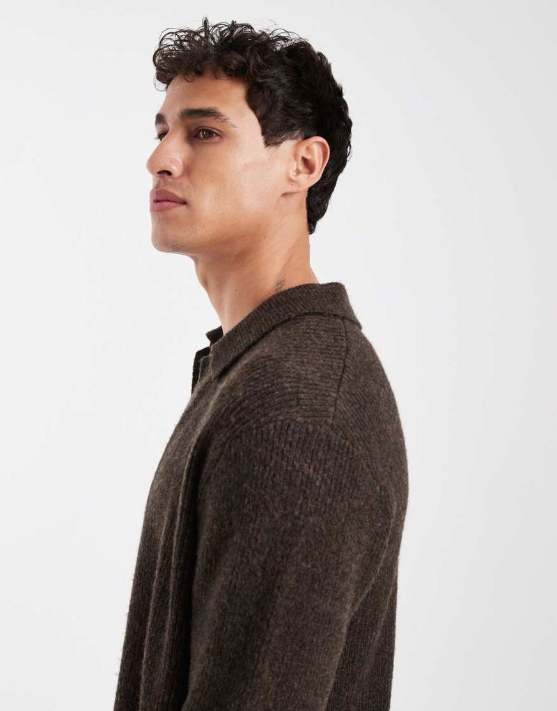 Button Down Polo Jumper In Brown