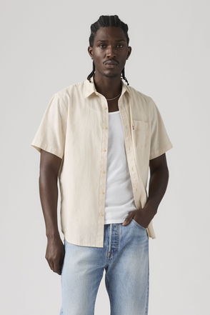 Off-duty mood Stripe design Revere collar Button placket Short sleeves Chest pockets Regular fit.