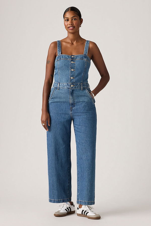 A no-brainer one piece that makes getting dressed that much easier. Our Drea Jumpsuit features bra-friendly, adjustable straps, a button-up front, two side pockets and a flattering slim fit. A no-brainer jumpsuit Cut with a slim fit Features a button-up front and adjustable straps. With two side pockets We made this garment with soft, 100% cotton that gives it an easy, drapey fit.