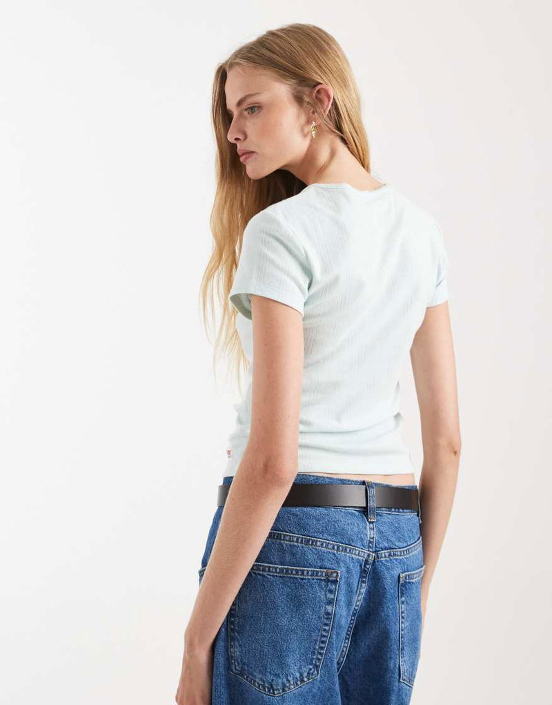 Dry Goods Pointelle Baby Tee In Pale Blue