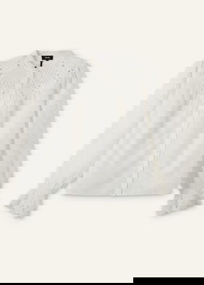 Romantic, elegant and ready to balance out your baggiest pants. Our Edith Blouse features a high neckline, flutter sleeves, a flowy fit and floral detailing.