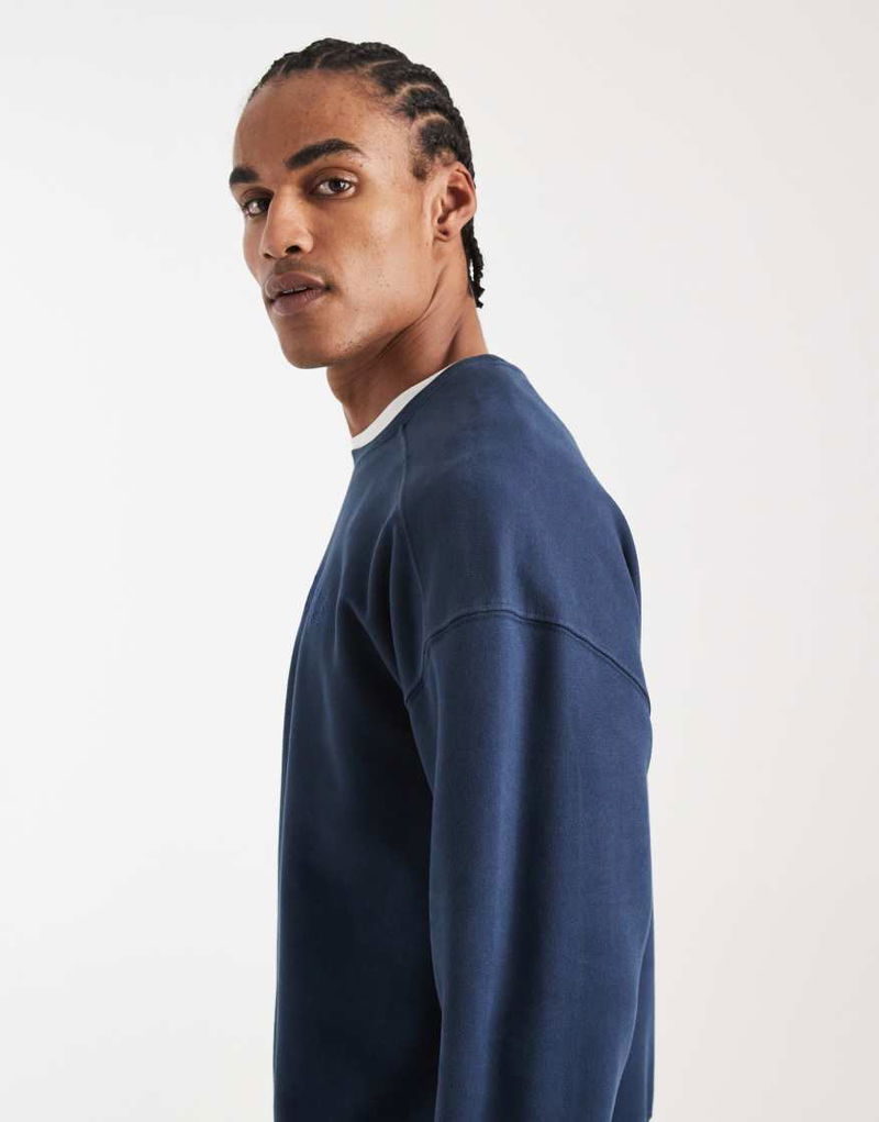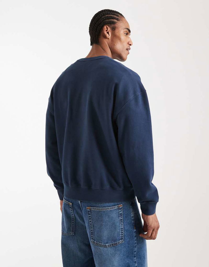 Embroidered Logo Boxy Crew Sweatshirt In Navy