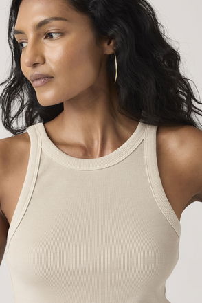 Classics like our Essential Sporty Tank never go out of style. We made this one with an ultra-flattering neckline and a fitted cropped cut-all topped off with our Housemark logo.