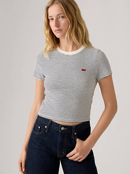 Classics like our Essential Sporty T-Shirt never go out of style. We made this one with an ultra-flattering high neckline and a fitted cropped cut-all topped off with our signature red tab.