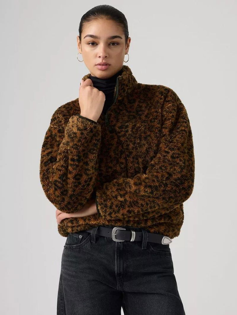 Gemma Sherpa 1/4 Zip Fleece, Brown Multi
