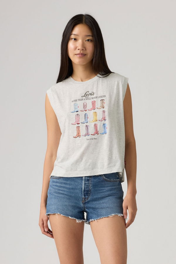 The definition of a warm-weather staple, our Graphic Boxy Tank features a crew neckline, a sleeveless design and a standard fit for extra movement.