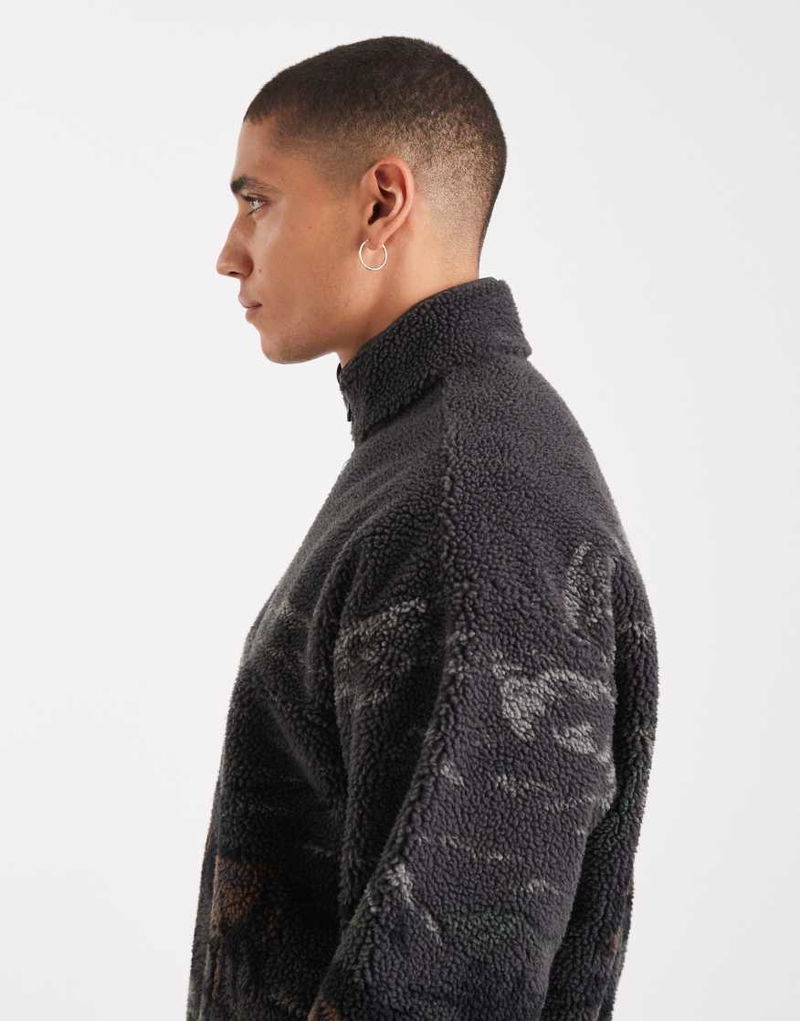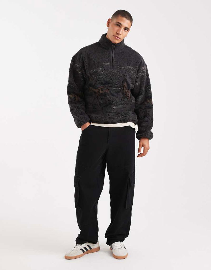 Idyllwild Running Horses Print Sherpa Half Zip Sweatshirt In Multi