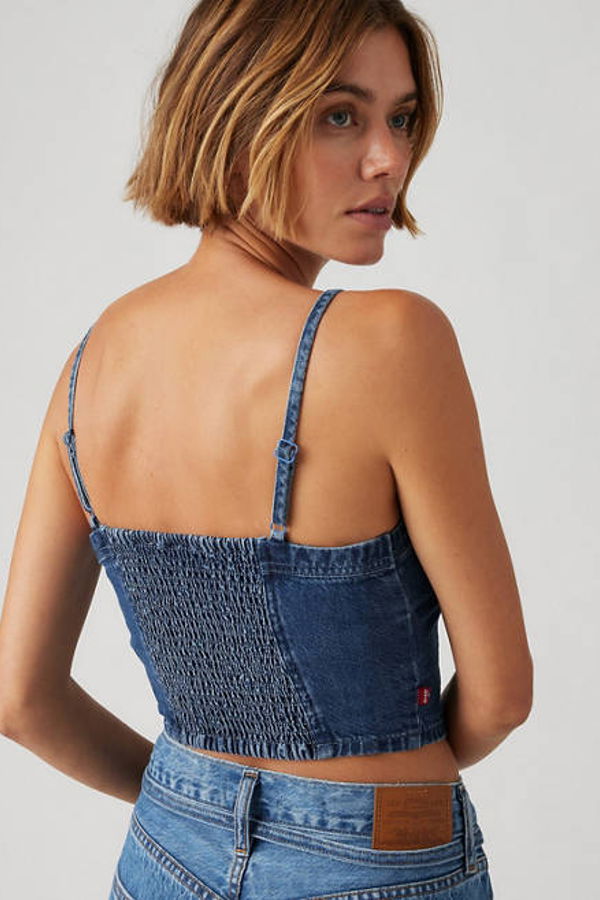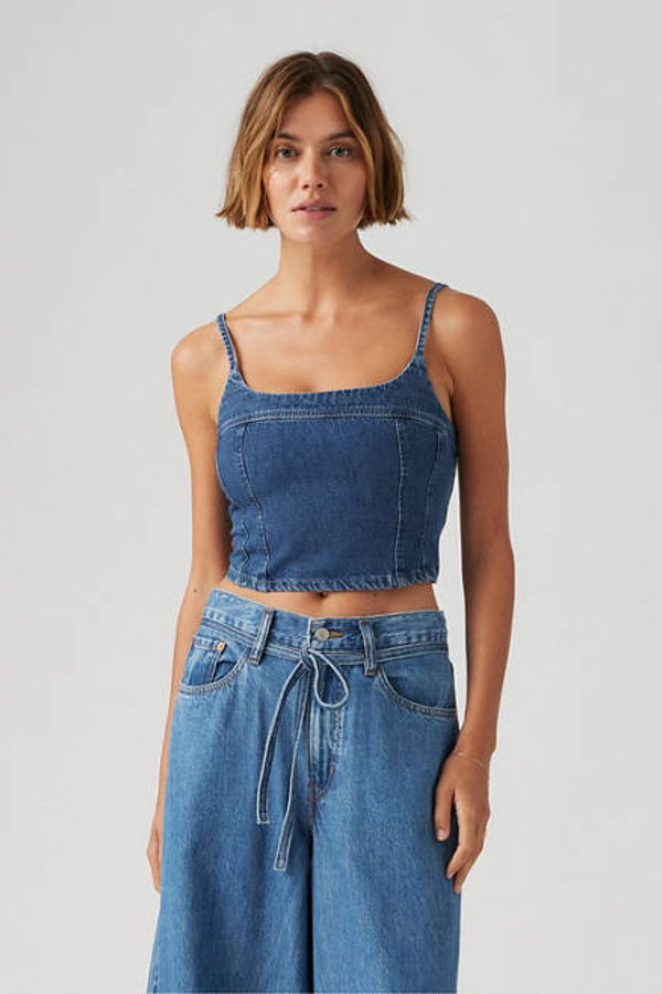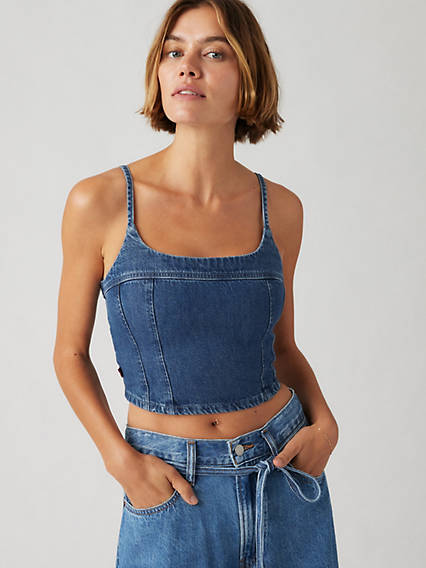A timeless cami never goes out of style. Our Jadine Denim Cami Tank features a flattering scoop neckline, adjustable straps and a body-hugging cropped fit. A timeless denim cami With a body-hugging cropped fit