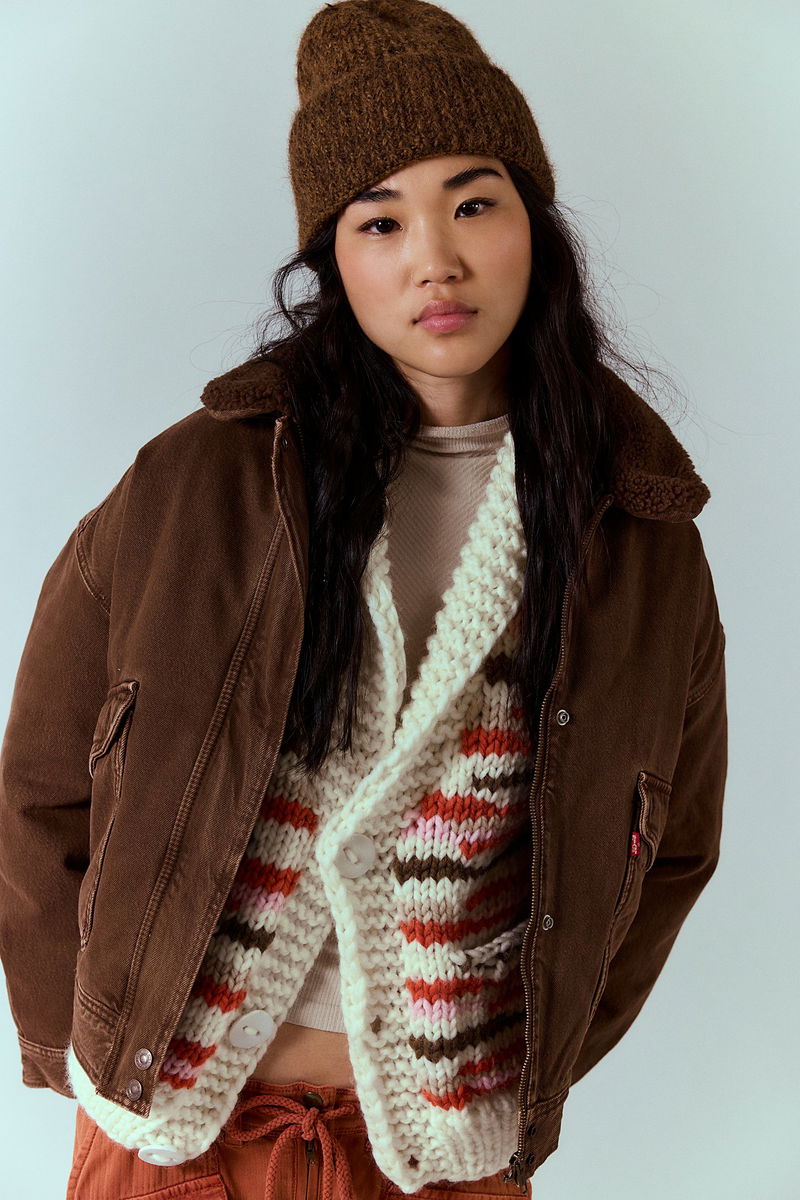 An iconic bomber from Levi’s gets a warm upgrade, featuring a sherpa collar, a loose, relaxed fit, and an ultra-soft denim fabrication.