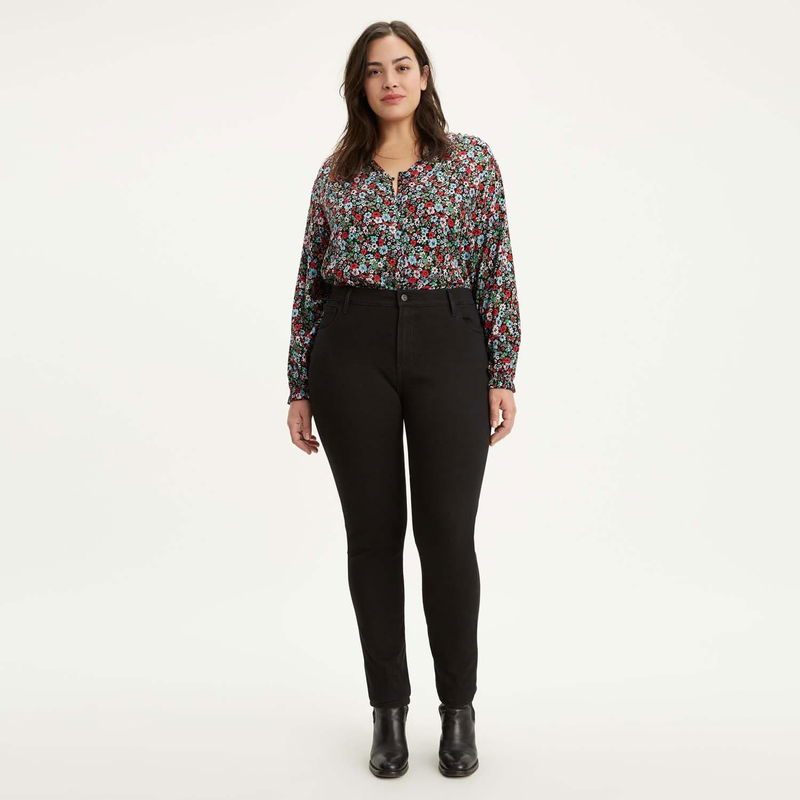 Womens Levis 721 Plus High Rise Super Skinny Jeans in black. 5-pocket construction. Zip fly and button fastening. Branded waist patch buttons and rivets. Levi's, Sculpt with 4-way stretch is an innovative all-direction stretch that delivers extra mobility and comfort. Slim through hip and thigh.