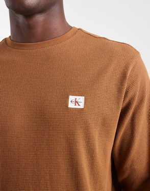 Long Sleeve Waffle Thermal T-shirt In Dark Green