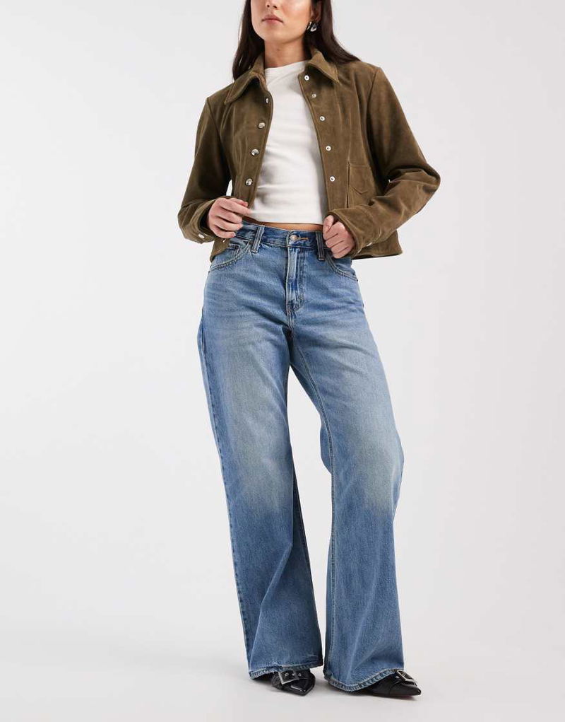 Loose Bootcut Jeans In Mid Wash