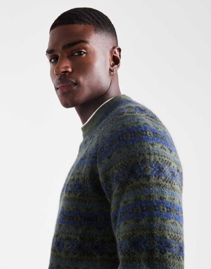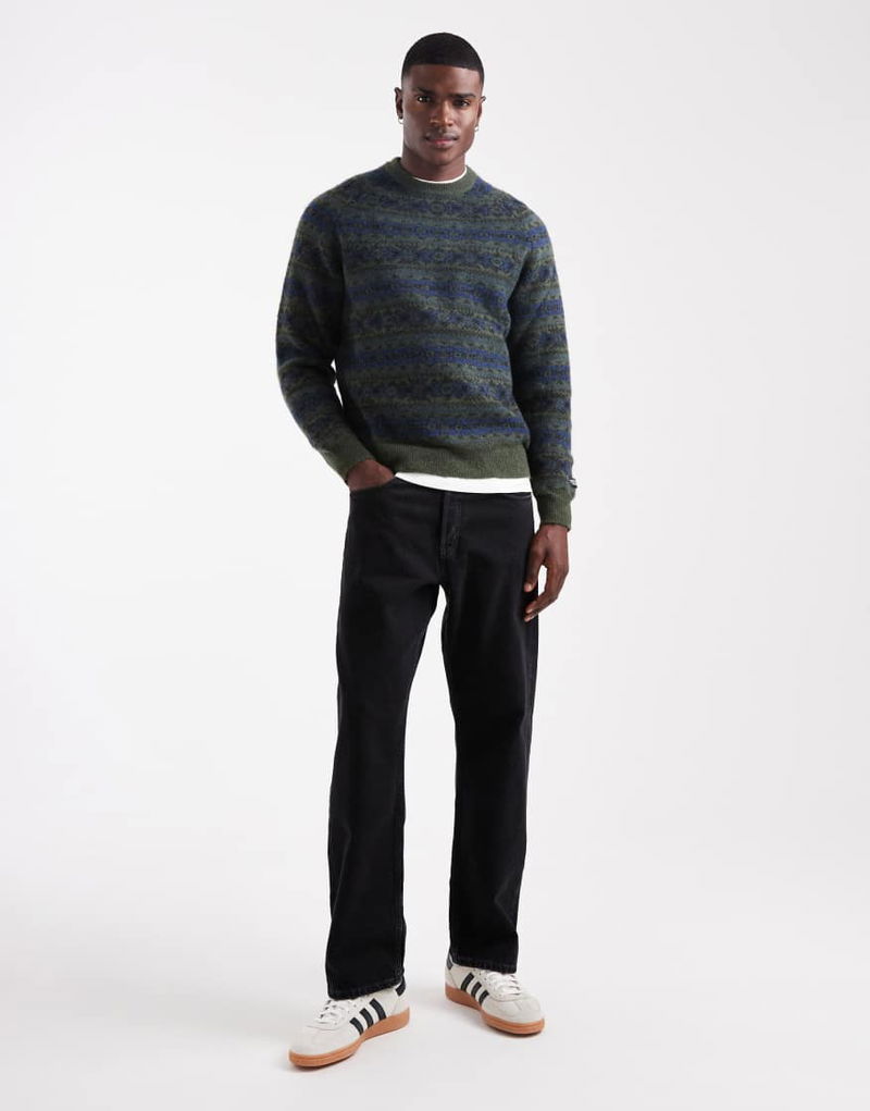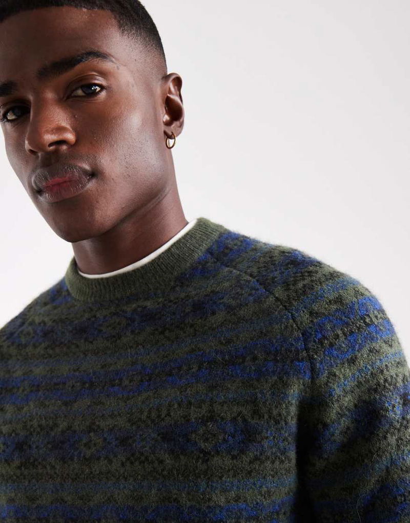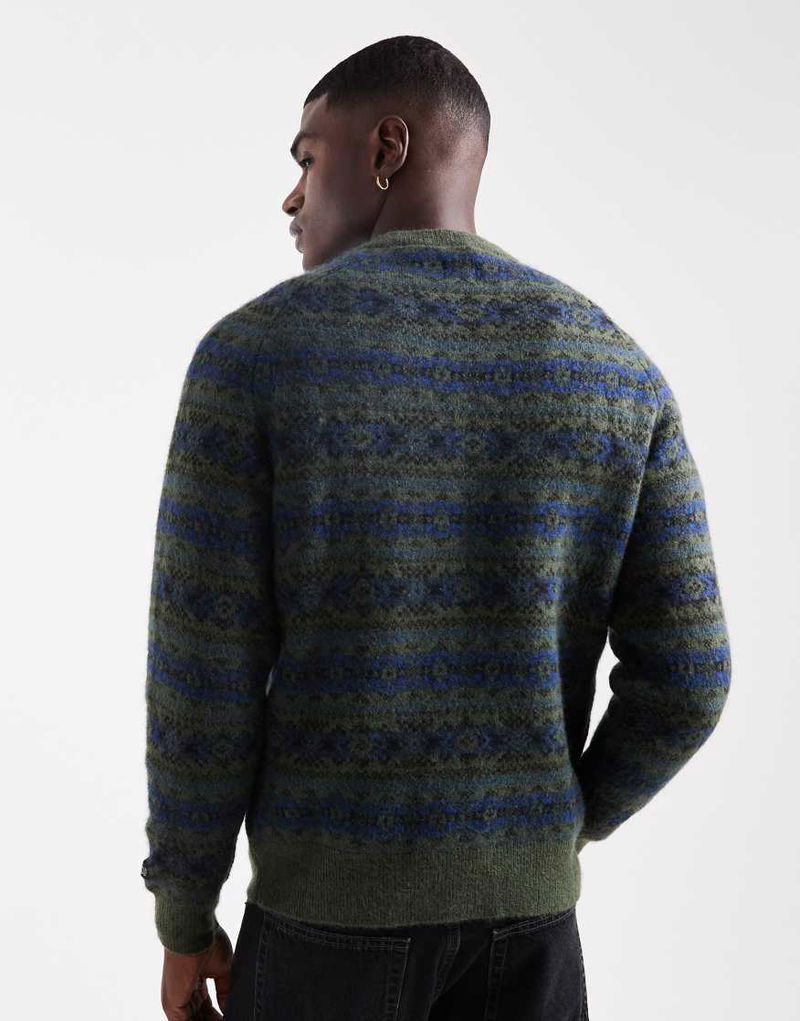 Presidio Raglan Fairisle Knit Jumper In Dark Green