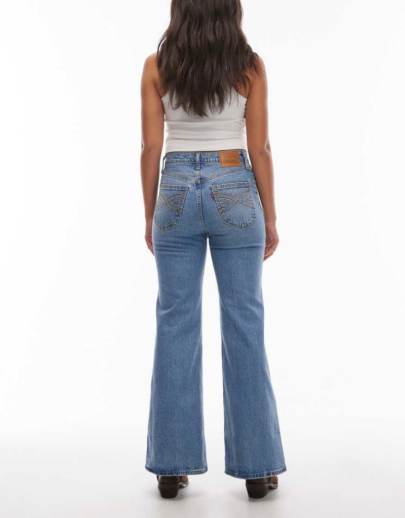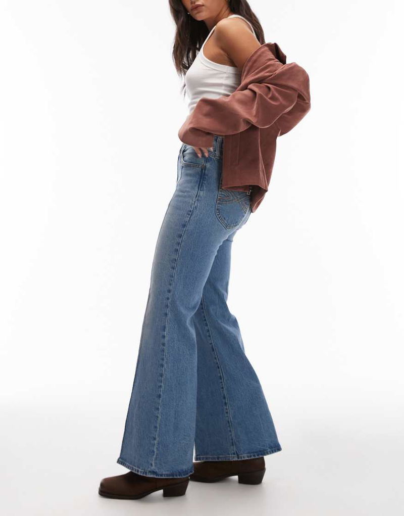 Ribcage Bells High Rise Flare Jeans In Washed Blue