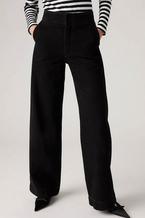 More than just denim Wide leg High rise Belt loops Five pockets Branded detail to reverse.