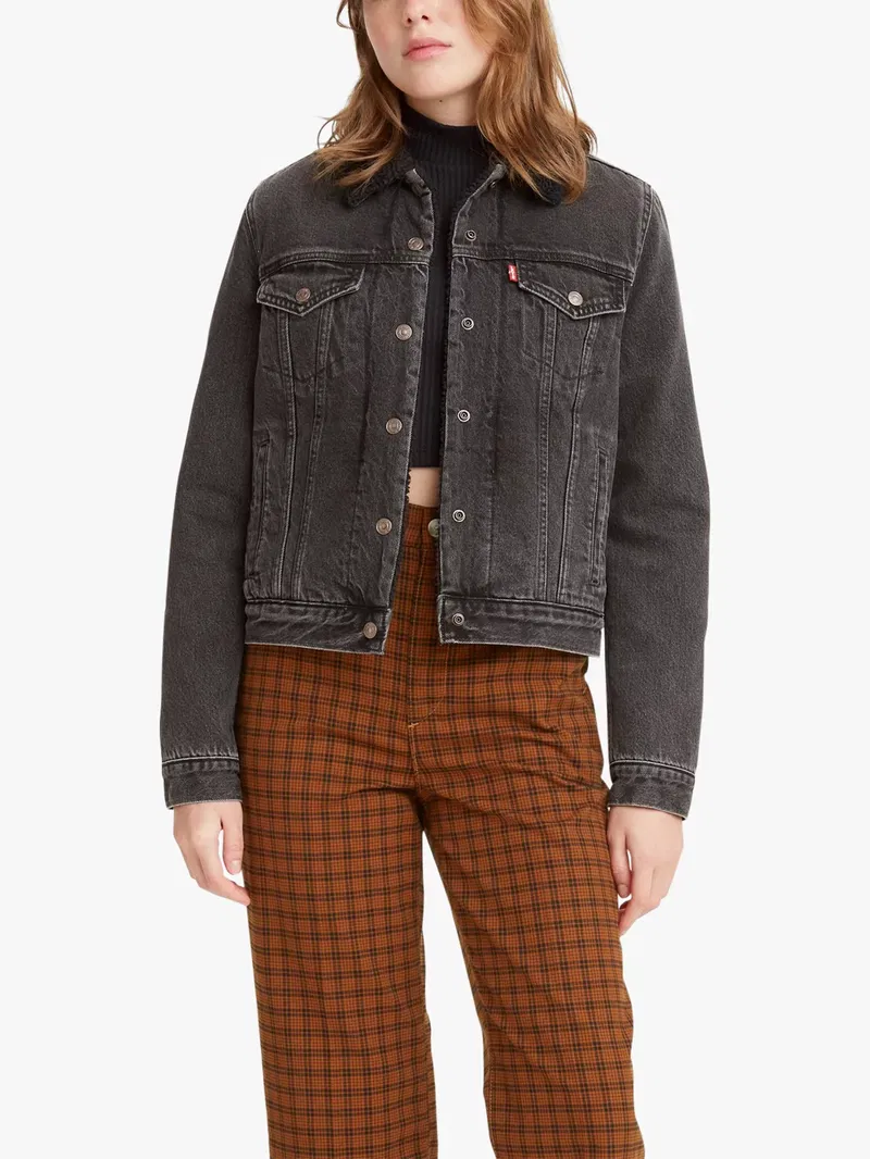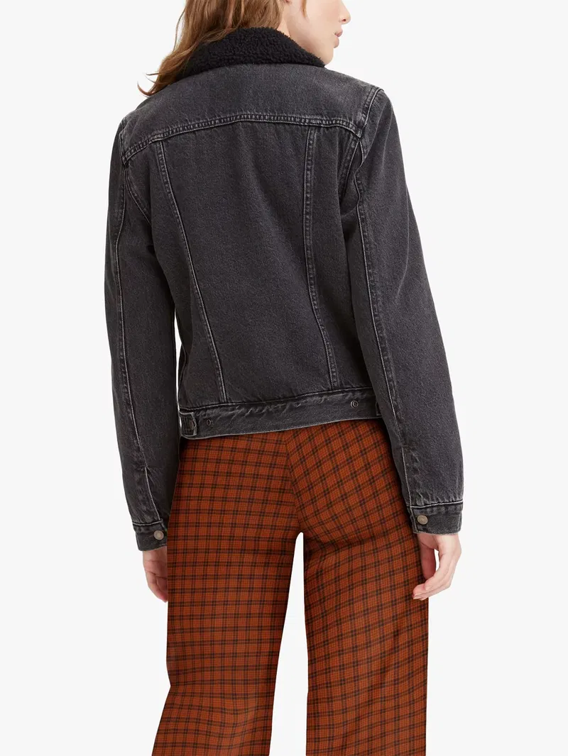 An ultra-cozy trucker jacket with warm sherpa lining. Features quilted lining in the sleeves for insulation. A blank canvas for self-expression.