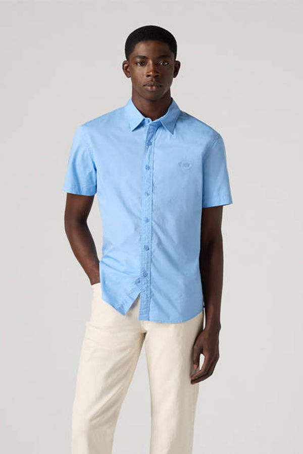 A button-up shirt isn't the de facto uniform for workers around the world for nothing. With its crisp, put-together style, our Battery Housemark Slim Fit Shirt instantly elevates any look. A versatile button-up you can wear with jeans or chinos. Designed with a streamlined slim fit Finished with an understated logo at the chest.