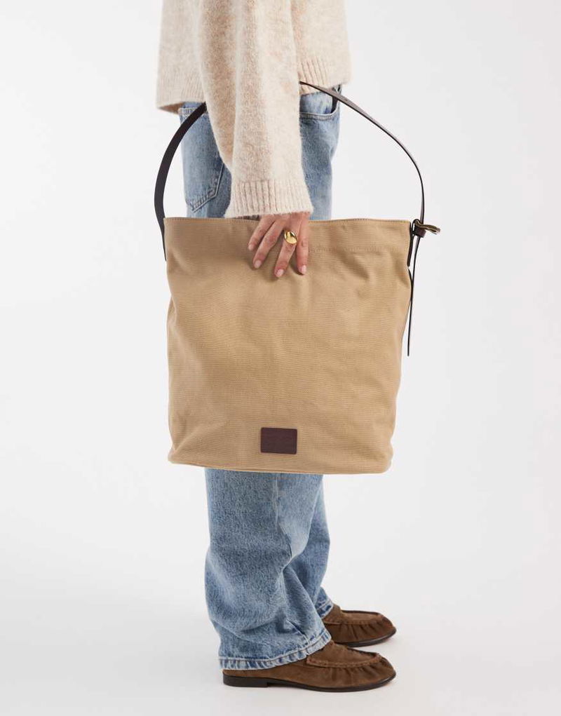 Shoulder Bucket Denim Bag In Beige