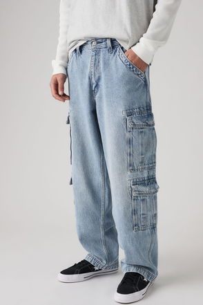 Everyday is a denim day Baggy fit Mid rise Belt loops Five pockets Branded patch to reverse.