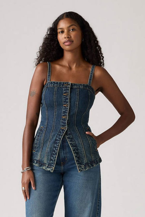 Bold, flattering and just the right amount of edge. They designed this Tailored Bustier Top with a soft square neckline, a button-up front and a flattering slim fit.
