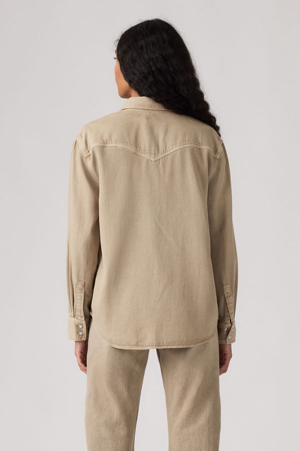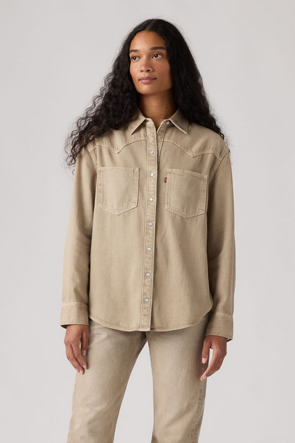 Cowboy boots not included. The Teodora Western Shirt is a feminine take on a western staple, with a classic snap-button front, two patch pockets, a relaxed fit and a western-inspired yoke design.
