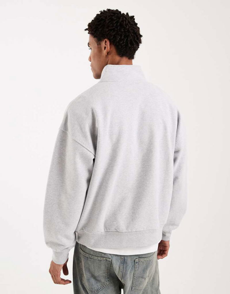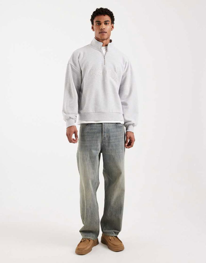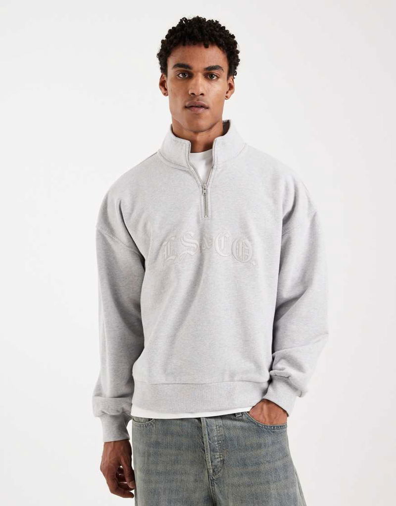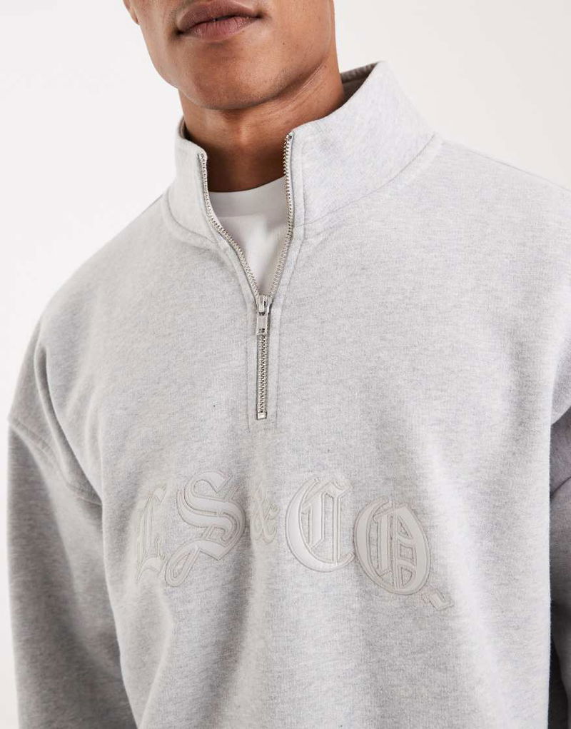 Tonal Embroidered 1/4 Zip Sweatshirt In Light Grey