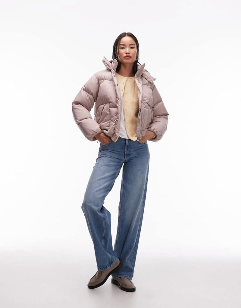 Western Shortie Puffer Coat In Stone