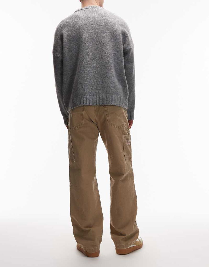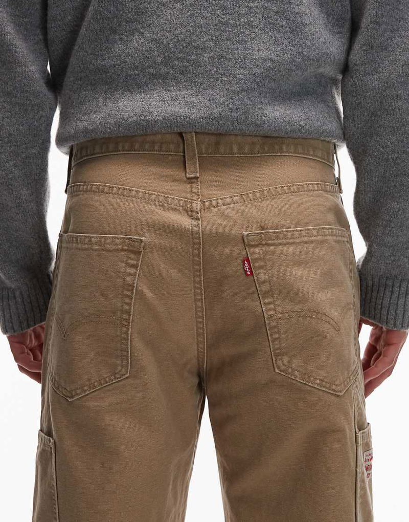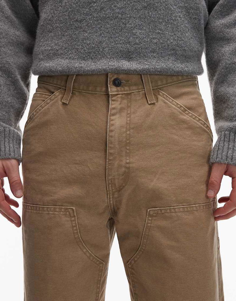 Workwear 568 Loose Straight Double Knee Trousers In Beige