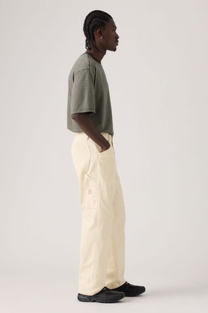 Straight cut leg. Slouchy, loose fit throughout. Sits at the waist. Regular rise Belt loops. Zip fly. Functional pockets. Hem designed to stack at the ankle.