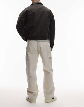 Straight cut leg. Slouchy, loose fit throughout. Sits at the waist. Regular rise. Belt loops. Zip fly. Functional pockets. Branded patch to reverse. Hem designed to stack at the ankle.