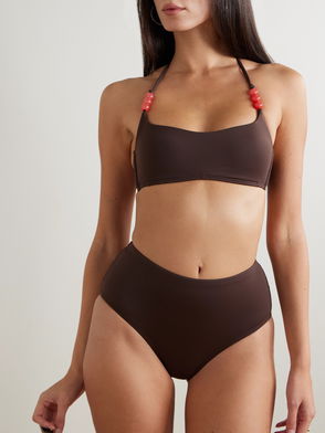 Bikini, Low-rise briefs, Checked, Stretch-polyester, Fully lined, Clasp fastening at back.