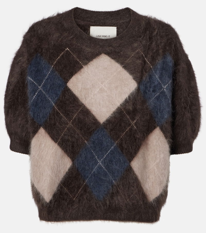 Designed in Stockholm and produced in Inner Mongolia, Lisa Yang's knitwear draws inspiration from Scandinavian minimalism and the designer's Chinese heritage. The Juniper cashmere sweater features a short-sleeved silhouette with an argyle pattern.