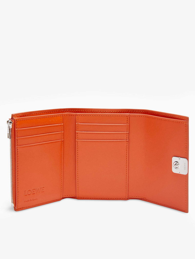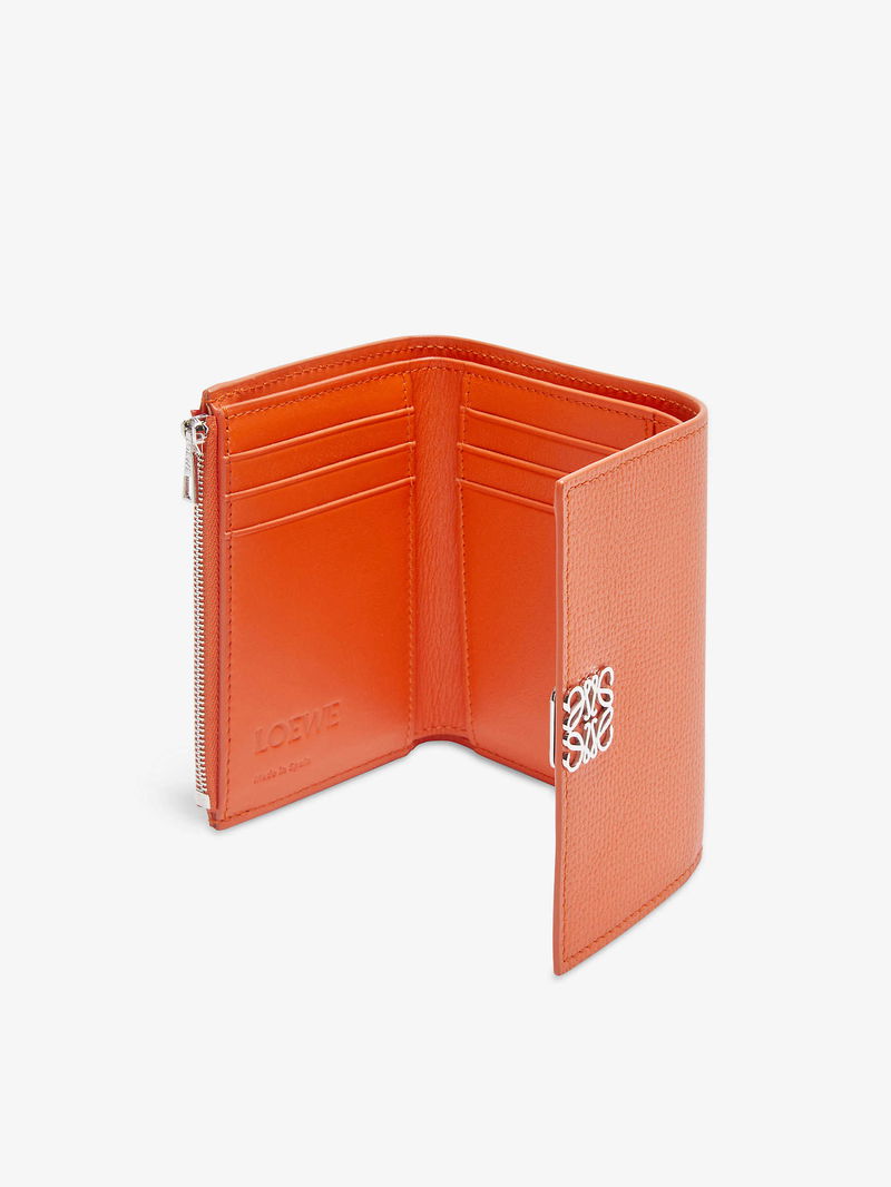 Loewe leather wallet. Pressed stud fastening. Six card slots, three slip pockets, zipped coin compartment, Anagram logo plaque, silver-toned hardware.