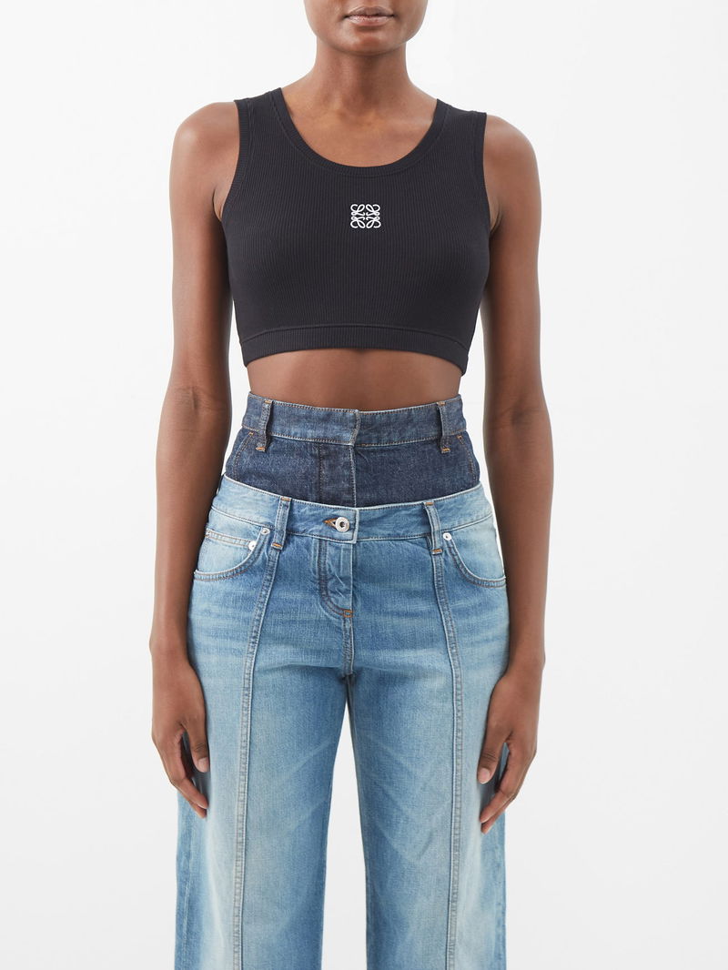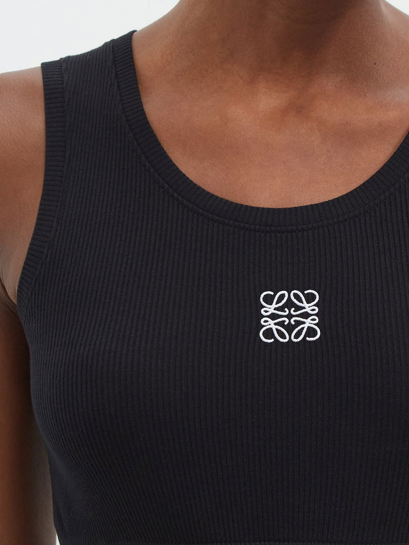Channel a sporty mood with Loewe's black tank top, cut to a racerback silhouette from ribbed cotton-blend jersey embroidered with an Anagram logo.