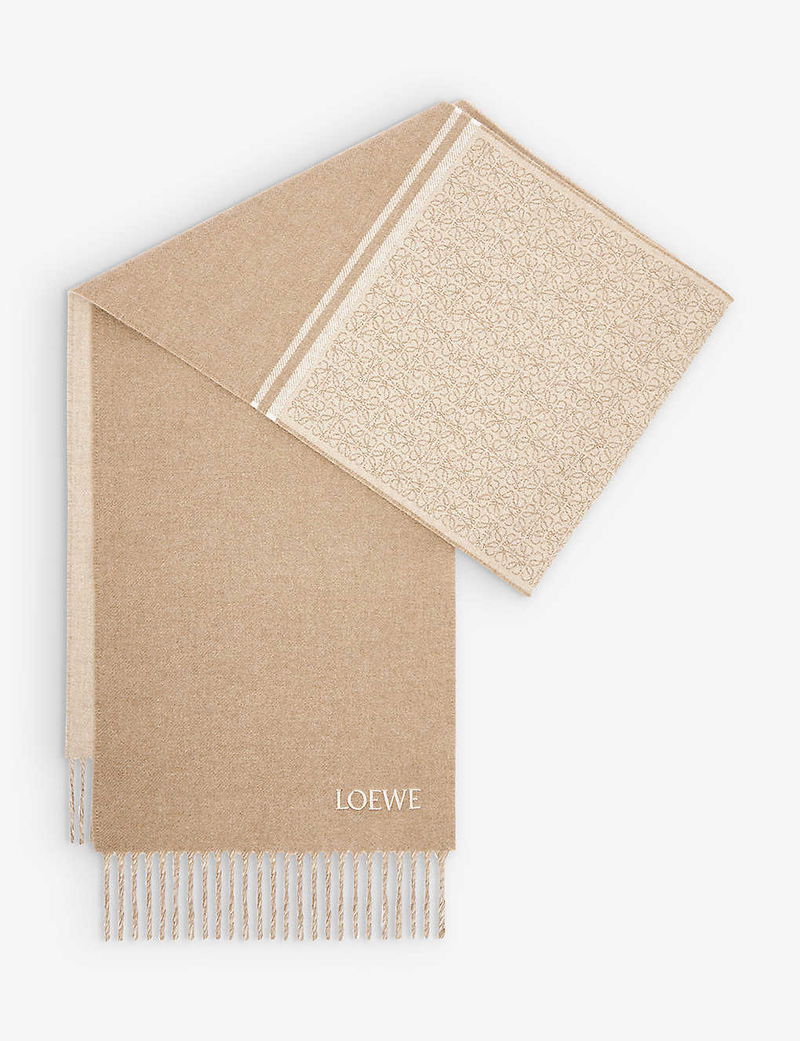 If there’s one thing we've learned from Loewe over the seasons, it's that layers (and lots of them) are key — whether that’s an oversized coat slipped over a slinky dress or a sumptuously soft cardigan paired with fluffy headgear. Plucked from the label's latest accessories collection, this two-toned scarf is made from the cosiest blend of wool and cashmere before it’s finished with the brand’s iconic signature motif.