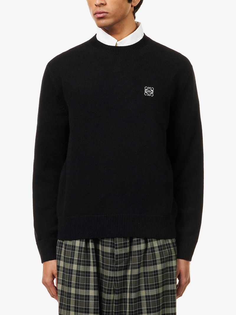 Anagram-Embroidery Crewneck Wool Jumper