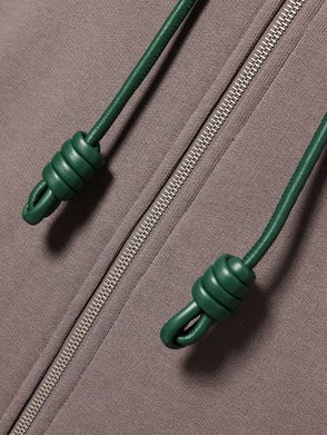 Relaxed fit, drawstring hood, long sleeves, embossed anagram at back, all-over knitted, ribbed trims